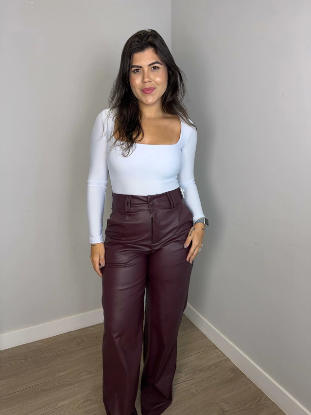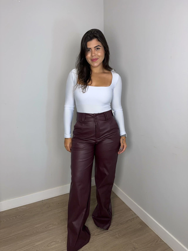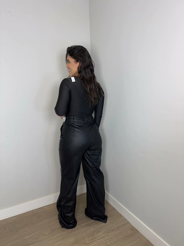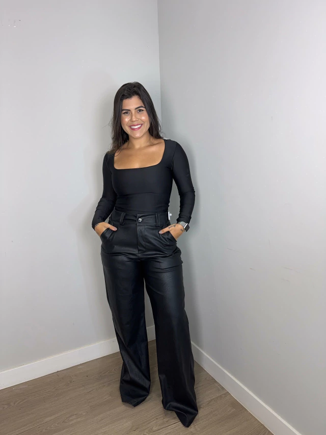 Não perca a chance de brilhar! Adicione a Calça Wide Leg Resinada ao seu closet e arrase com elegância em qualquer ocasião.