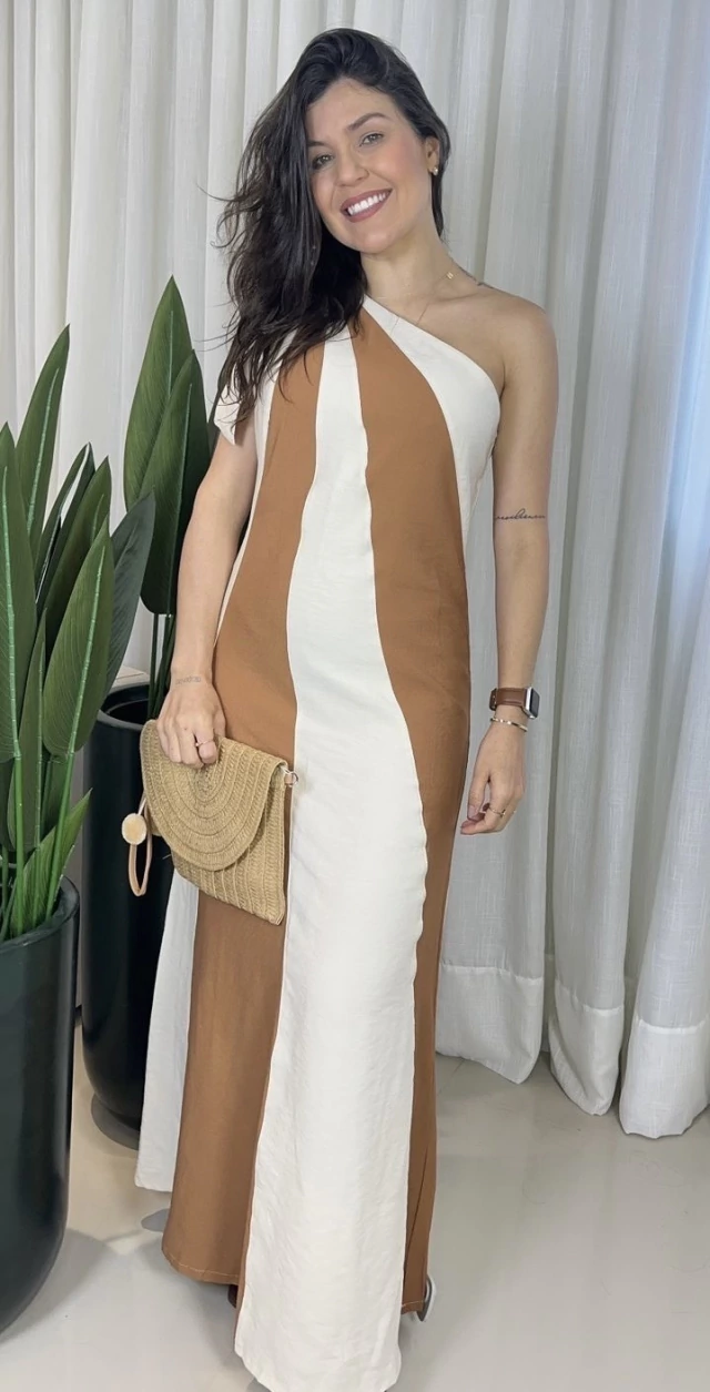 Vestido Longo Alça Única com Amarração Bicolor - Rosângela