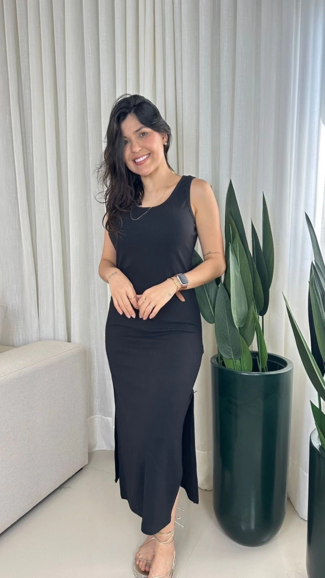 Vestido Longuete Decote Quadrado com Fenda - Rayssa