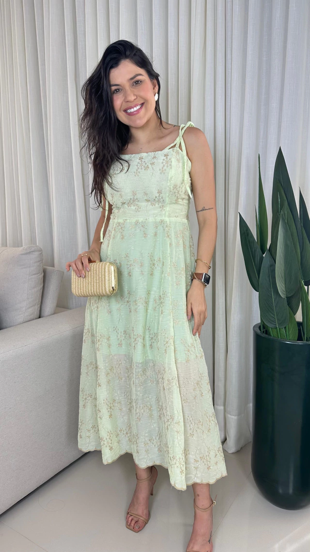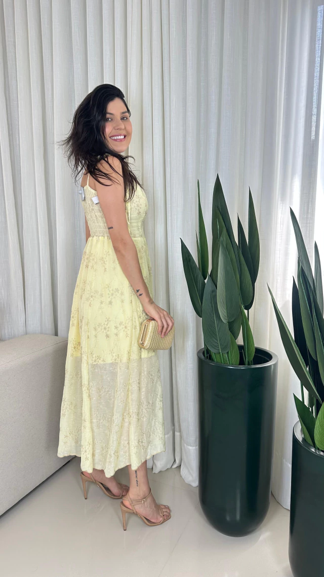 Complete seu visual combinando o vestido com sandálias de tiras ou rasteirinhas, criando um look fresco e encantador. Aposte em acessórios delicados, como brincos pequenos ou pulseiras finas, para realçar a leveza e a sofisticação da peça. O Vestido Longuete Rebeca é a escolha perfeita para quem deseja unir elegância e conforto em momentos especiais.